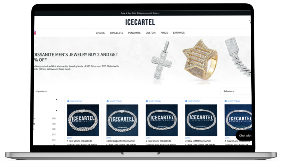 Based in Brooklyn, New York, ICECARTEL sells high-end moissanite diamond jewelry.